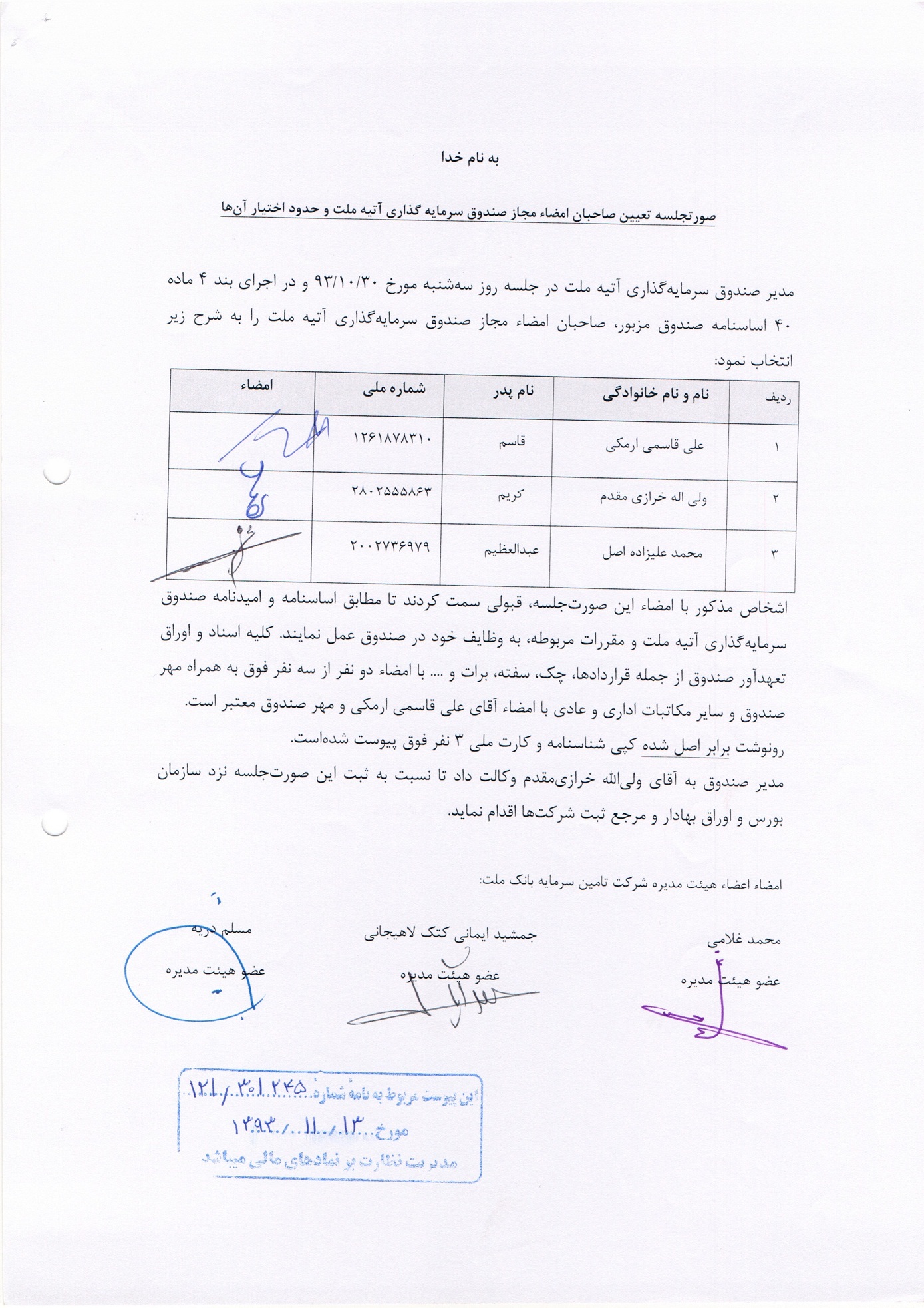 صورتجلسه صاحبان امضا مجاز 93/10/30